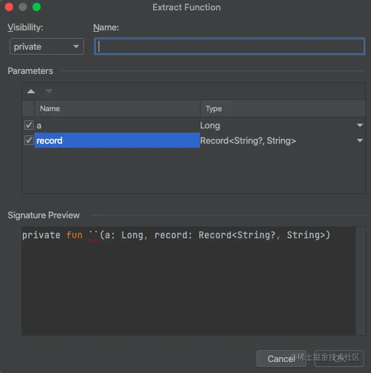 IntelliJ 会建议一个名称,该名称有时非常切题,有时则不那么切题,但它处于编辑模式。如果您愿意,您还可以选择提取多次出现的选择或仅提取当前选择。