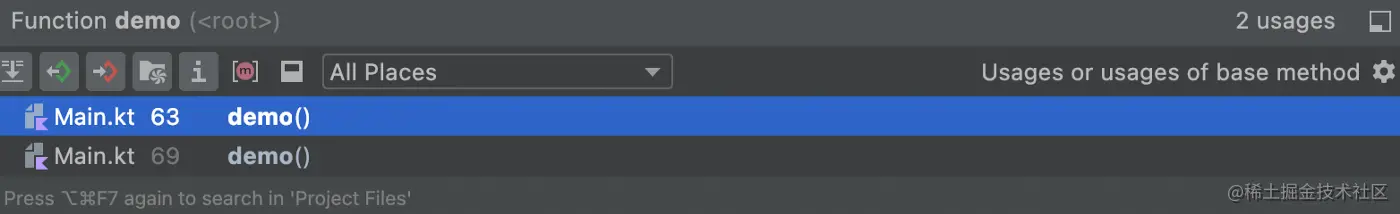 (Ctrl + Alt + B / Cmd + Opt + B) - 转到某个成员的用法