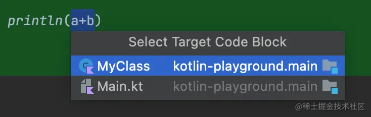 IntelliJ 提供的选项取决于语言,在下面的屏幕截图中 — 是为类定义还是为文件定义。选择后,您仍然可以使用与提取局部变量相同的选项。