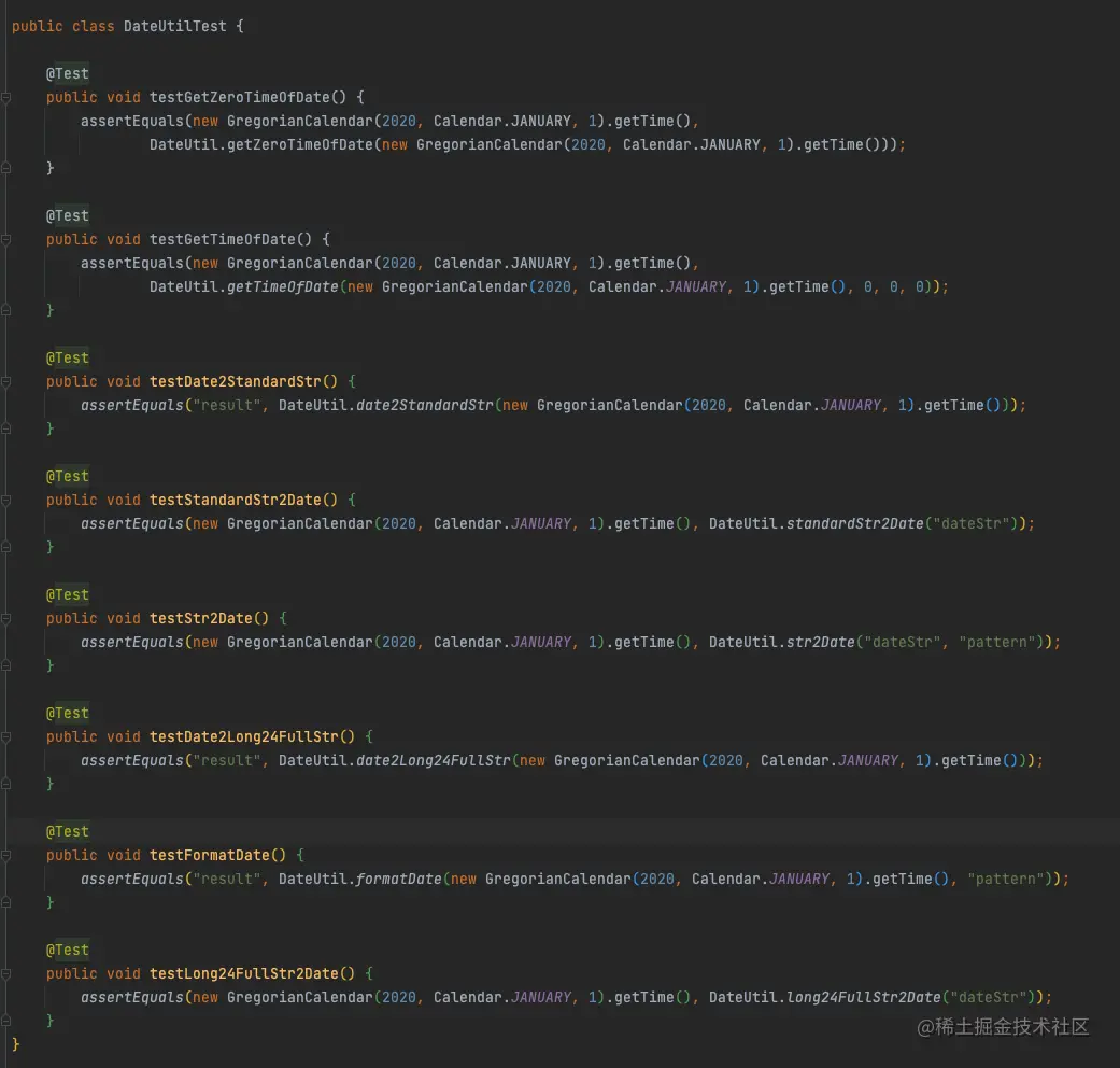 现在我通过一个例子告诉大家SquareTest是如何使用的,下面有一个DateUtil的类,写了一些方法。