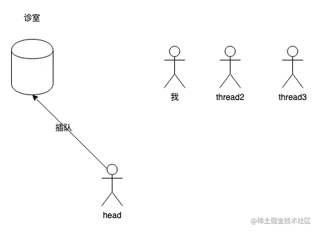 如果我到了诊所门口,可以先去看看是否有人在就诊,如果没有则可以直接进入诊所就诊。就诊就是等于获取锁成功。