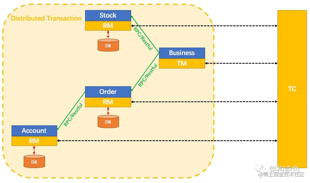 - 分布式事务其实现机制中会有全局事务标识,即 xid,xid 需随着 RPC 请求传递给各分支事务;下游服务也是根据请求上下文中是否有 xid 来判断自己是否开启分支事务