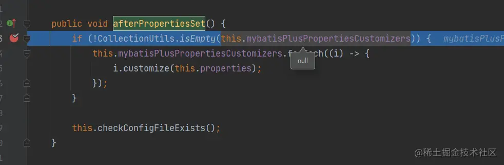 mybatisPlusPropertiesCustomizers.forEach(i -> i.customize(properties));