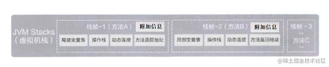 一些附加信息:存储了一些和 Java 虚拟相关的数据,比如程序的调试数据。
