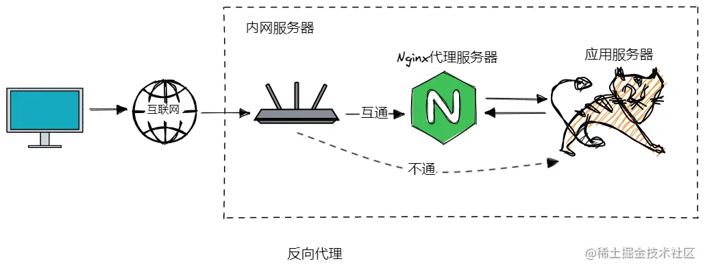 反向代理服务器一般位于用户和服务器之间,用户访问反向代理服务器获取应用服务器资源,用户不知道应用服务器的地址,是由代理服务器转发的,有降低网络和服务器的负载,提高访问效率的作用。