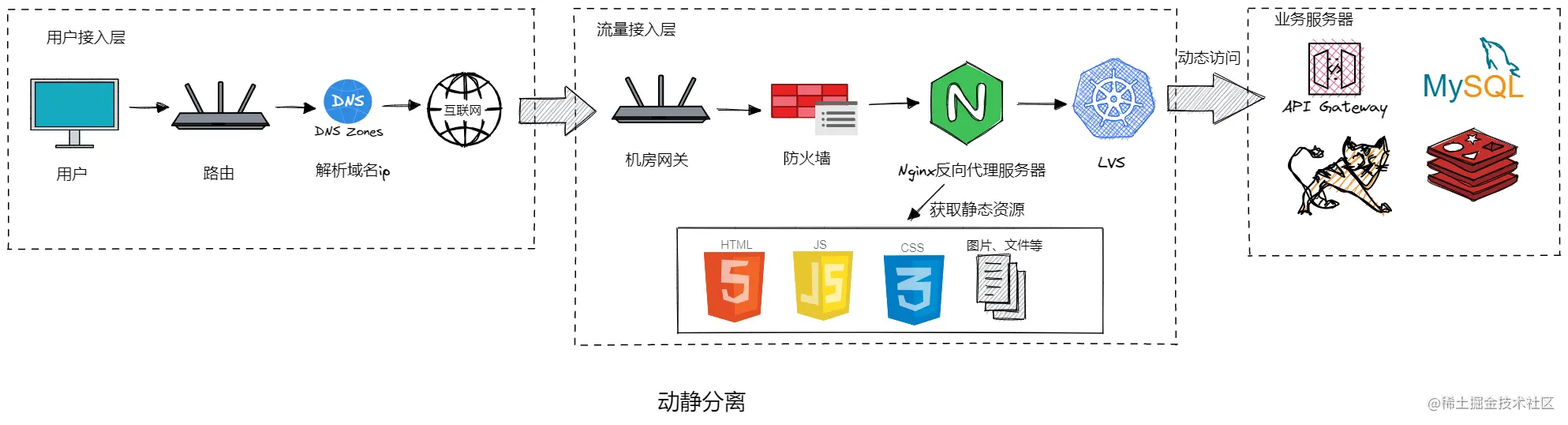 动静分离的最终目的是将获取静态资源和动态资源分离开,提升服务器性能和高可用性。
