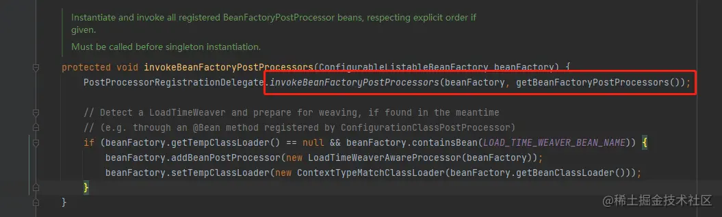 进入invokeBeanFactoryPostProcessors()调用BeanFactory后置处理器方法