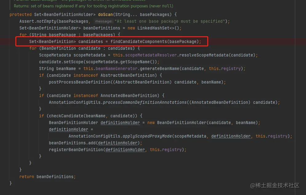 ClassPathBeanDefinitionScanner#doScan 继续往里 还是那句 红线标注的地方