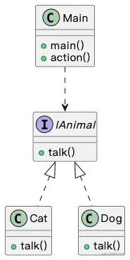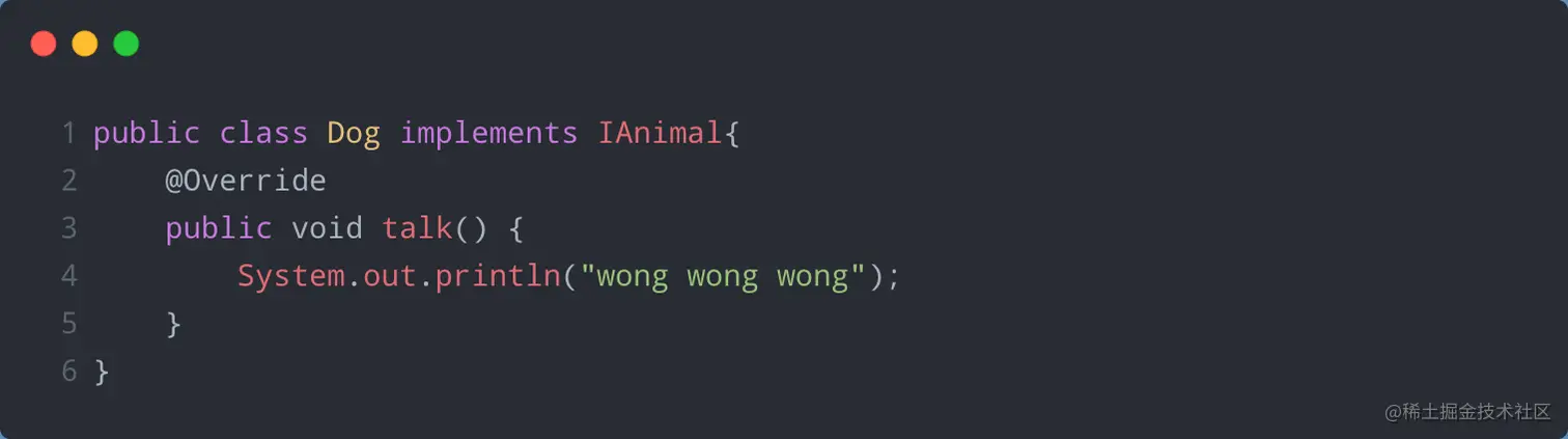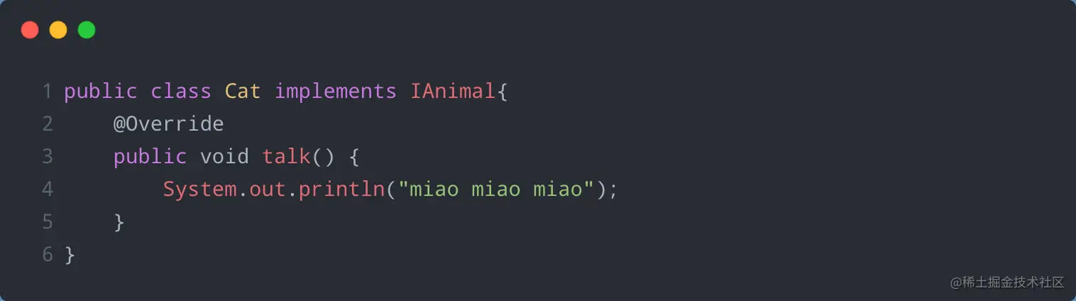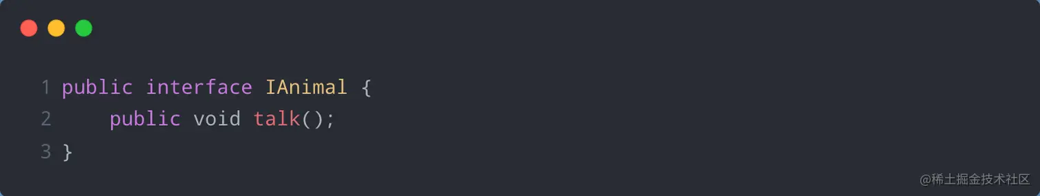 自定义一个IAnaimal的接口,里面只有一个抽象方法talk()。