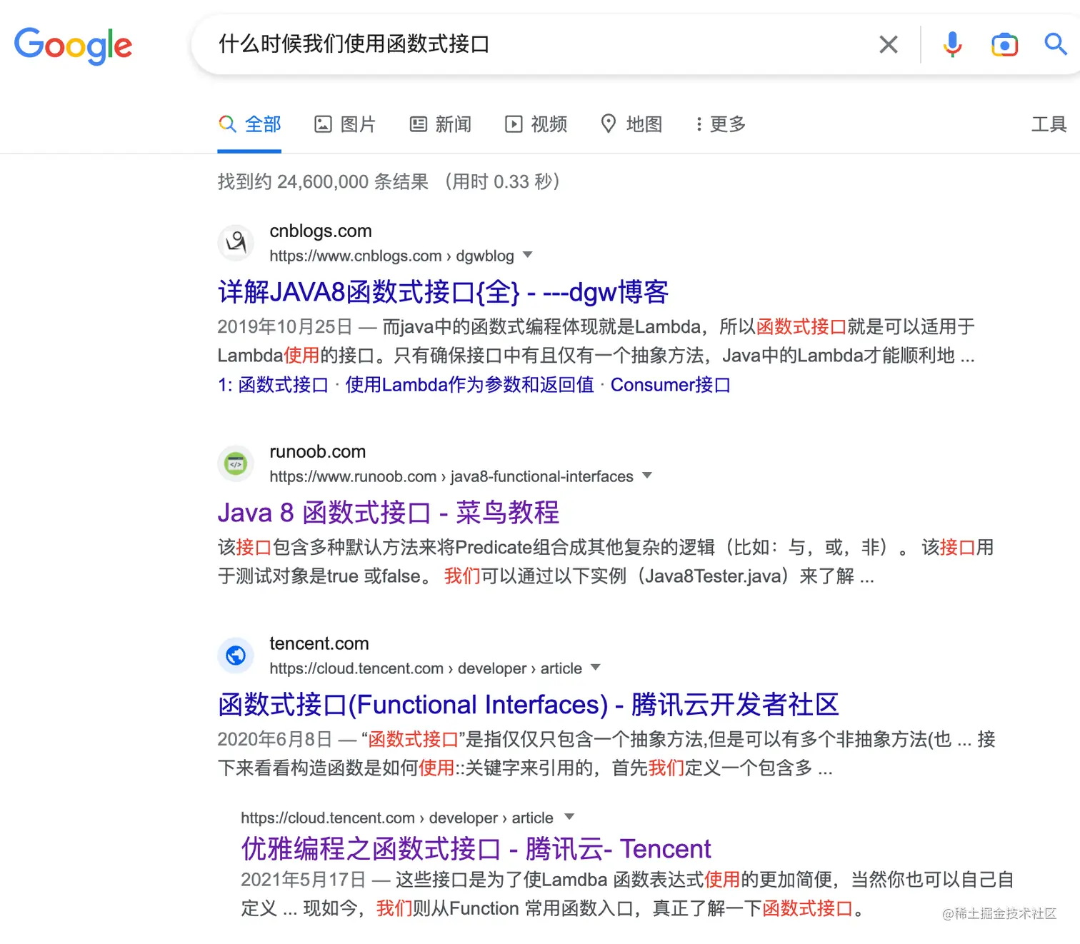 洋洋洒洒也写了一点,写完发现更迷糊了,我是知道函数式接口是啥了,甚至在工作的编码中也强迫自己用了一把函数接口,还合入了公司的代码仓。但是,什么时候什么情况下使用函数接口还一直困惑着我,包括google,baidu,statckoverflow都没有一个比较好的答案。于目前的我而言,函数式接口似乎和匿名内部类,和lambda表达式是一个东西。