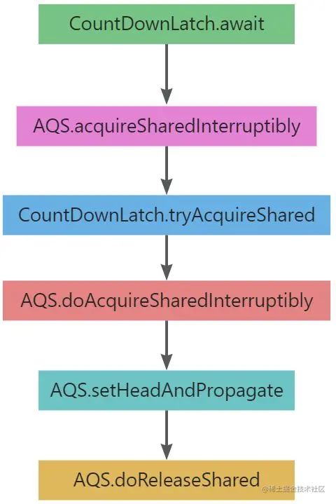 await方法调用sync的acquireSharedInterruptibly(1)。acquireSharedInterruptibly方法在AQS内部。