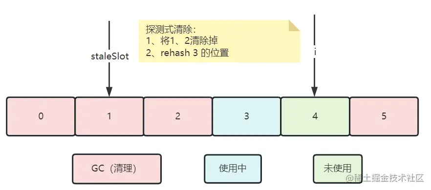 for (i = nextIndex(staleSlot, len); (e = tab[i]) != null; i = nextIndex(i, len)) {
