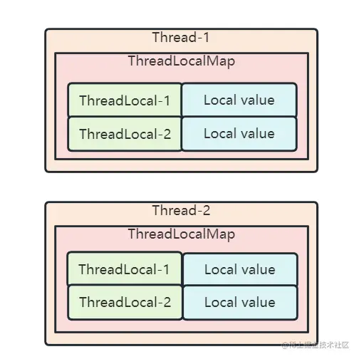一个 ThreadLocal 实例可以形象地理解为一个 Map(早期版本的 ThreadLocal 是这样设计的)。
