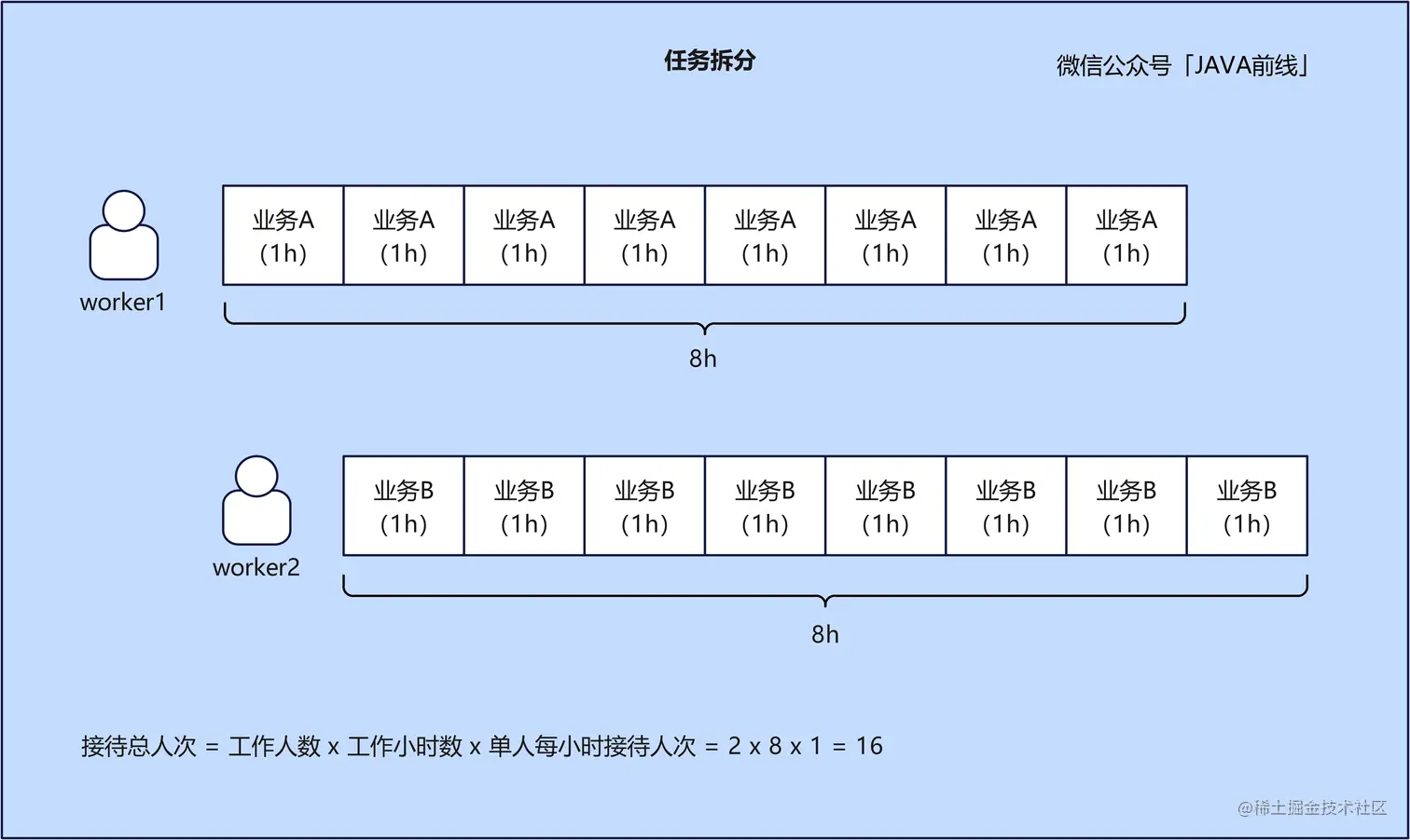 - 全天接待人次 = 2 x 8 x 1 = 16