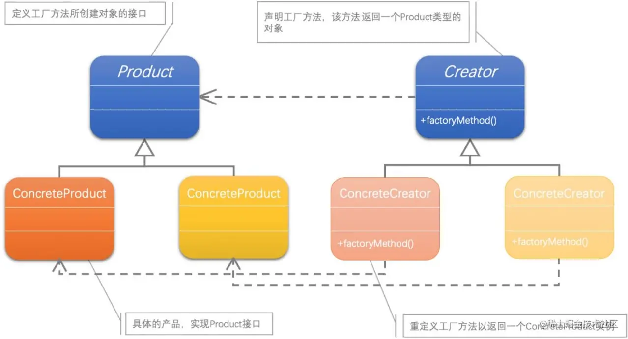 工厂方法模式包含四个角色: