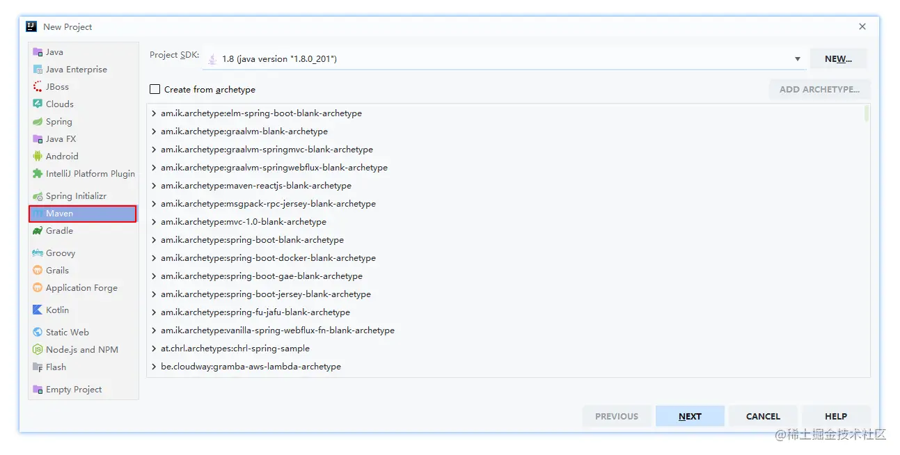 点击左边的 Maven,默认选择你的 JDK,然后点击 Next。