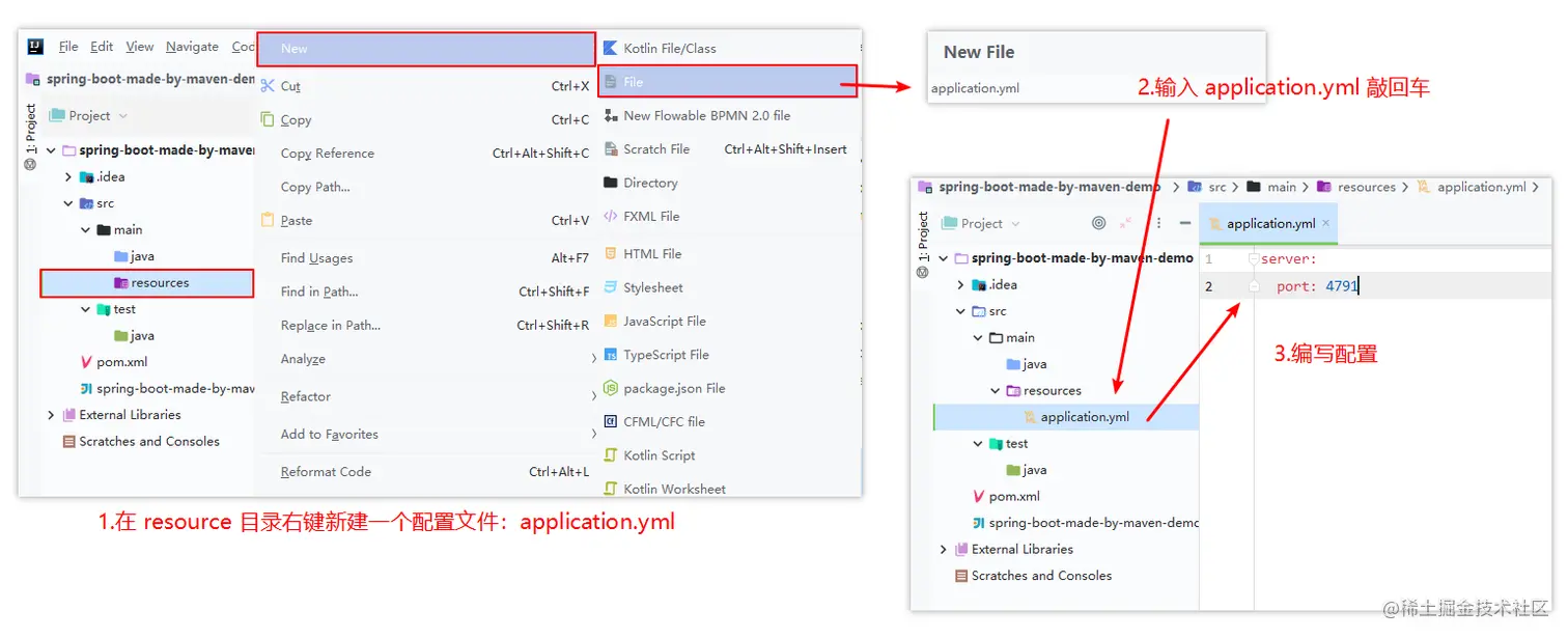新建 application.yml 配置文件,当然,你喜欢的话可以创建 properties 为后缀的配置文件。