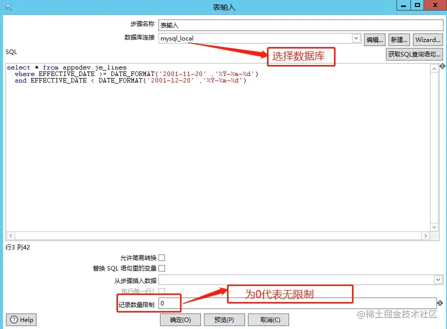 输出有以上几种,下面我们示范一个从数据库读取数据,输出一个csv文件。