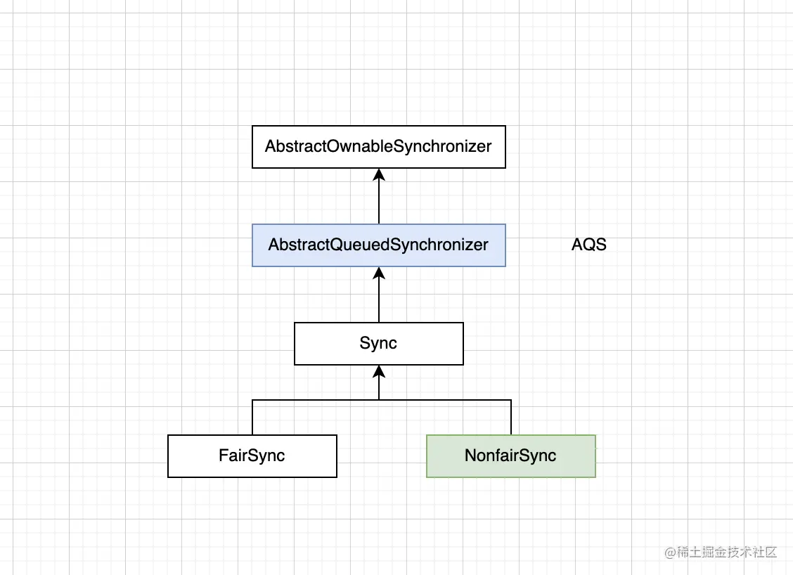 Sync 是一个抽象类,默认提供了两个实现,分别是我们上面提到的公平锁 FairSync 和非公平锁 NonfairSync,公平锁和非公平锁获取锁的方式不同,公平锁会先判断等待队列中是否有其他线程在排队,如果有,则加入等待队列的尾部,如果没有则通过 CAS 去尝试获取锁,如果获取不到锁则加入等待队列的尾部。而非公平锁获取锁的时候直接通过 CAS 尝试获取锁,不管等待队列中是否有其他线程在排队。