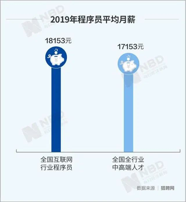 尽管有些大龄程序员的平均工资在去年可能遭遇了增速放缓,但总体而言,程序员职业的工资水平是较为突出的。数据显示,2019年,全国互联网行业程序员平均月薪为18153元,高于全国全行业中高端人才平均月薪17153元。