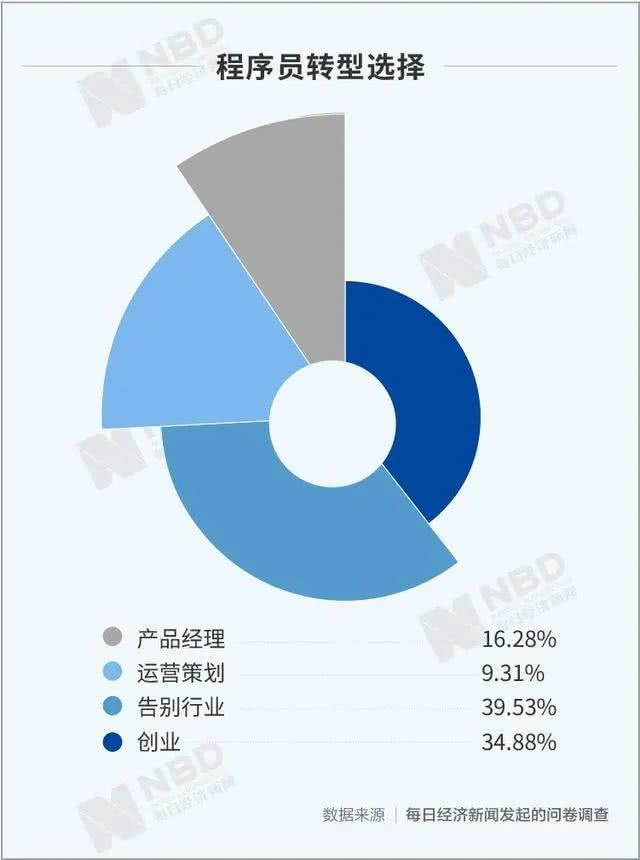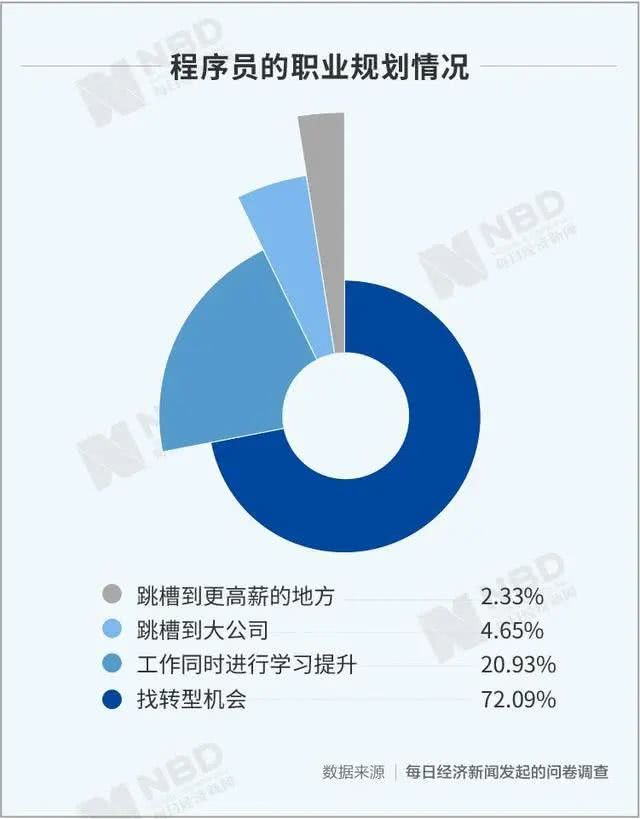 可程序员们大多仍旧充满着焦虑,在《每日经济新闻》记者收回的问卷调查中,72.09%的人在面对“若到35岁或40岁时,对未来的职业规划”这一问题时,都选择了找转型机会。