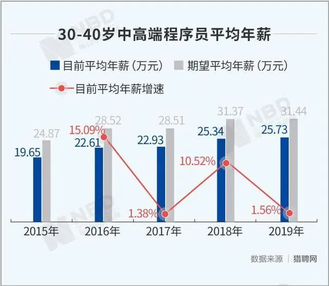 不过,数据显示,2019年30~40岁中高端程序员平均年薪增速明显较2018年放缓,这或跟去年以来互联网“寒冬”影响有关。