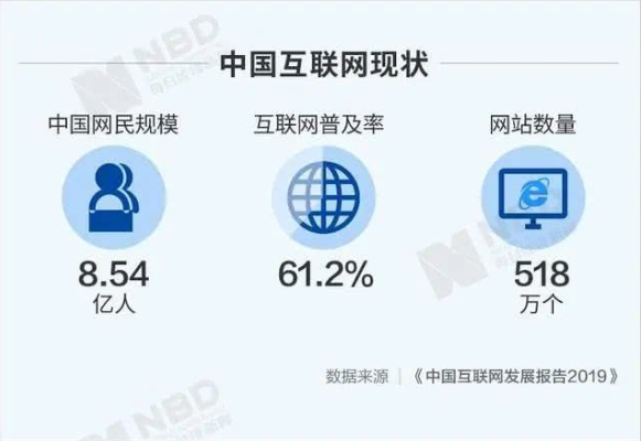 根据《中国互联网发展报告2019》,中国网民规模为8.54亿人,互联网普及率达61.2%,网站数量为518万个。