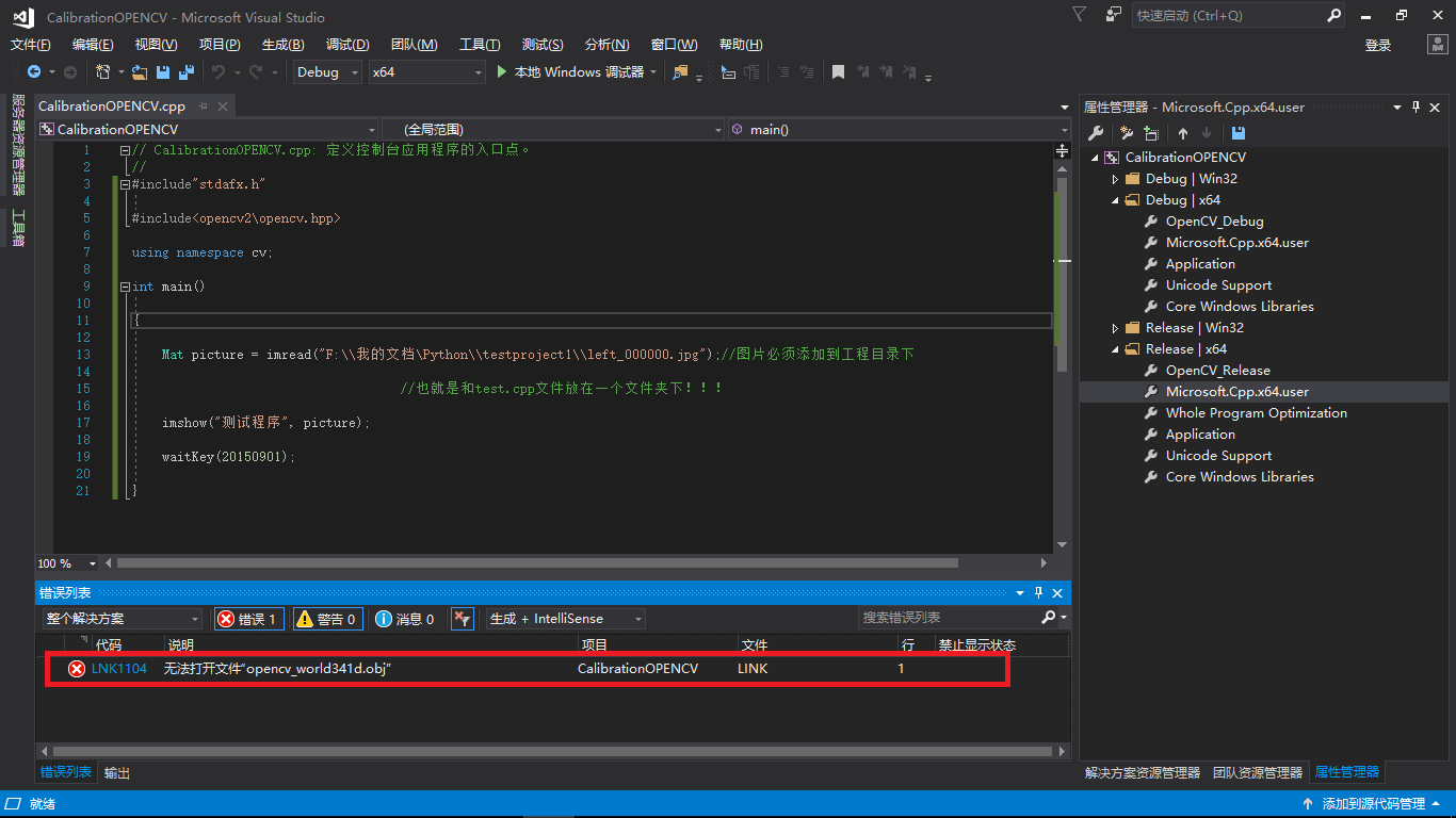 问题已解决:OPENCV配置没有问题,本人在VS2017某些组件没装全的情况下,新建工程配置OPENCV,导致出现该错误