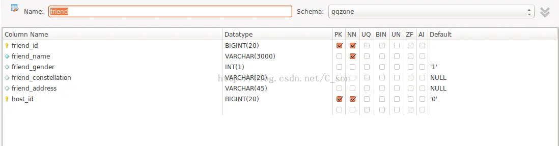 三、好友表(friend)