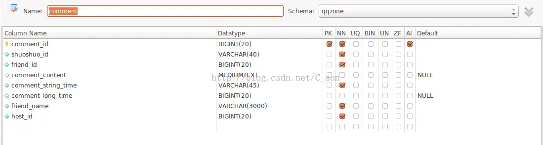 二、评论表(comment)