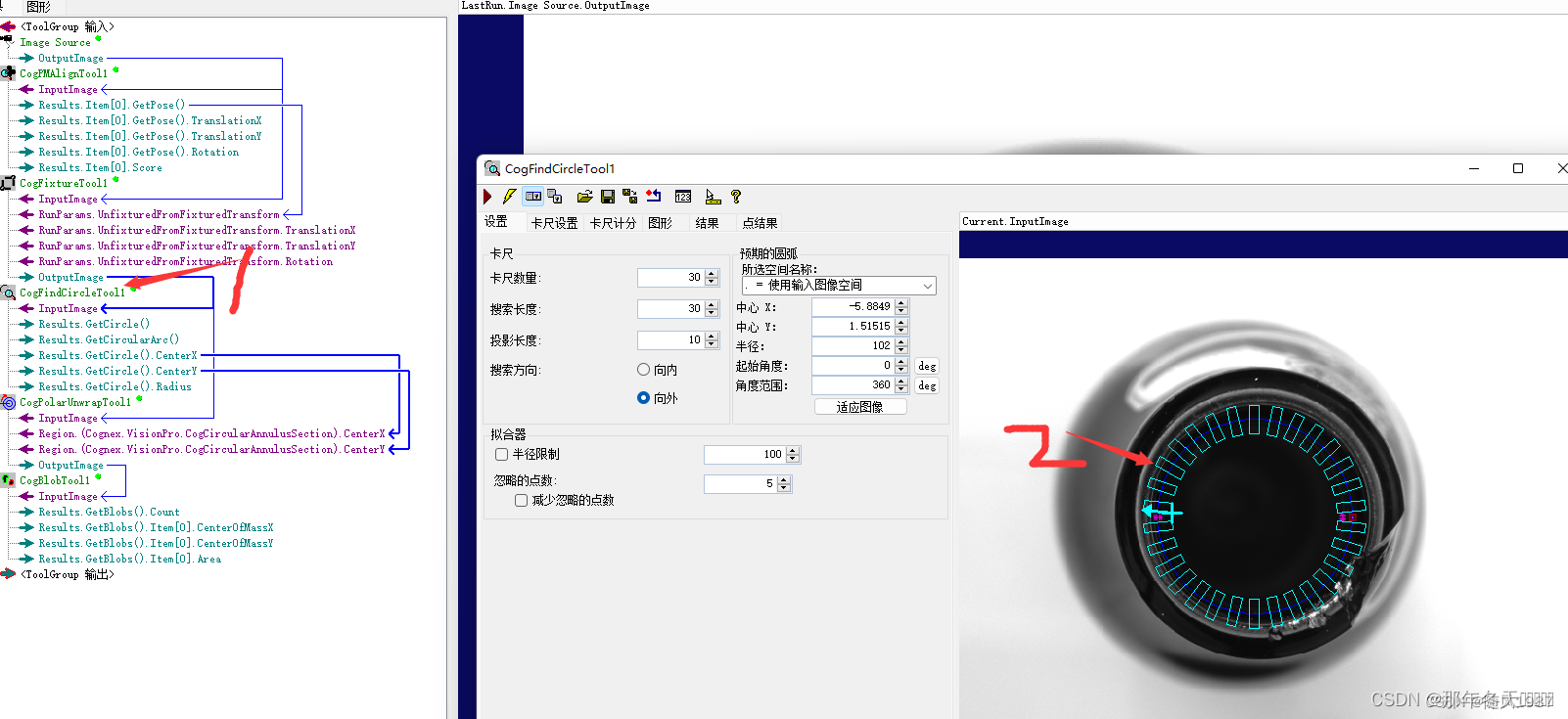 2.设置找圆工具 (找内径的圆形)