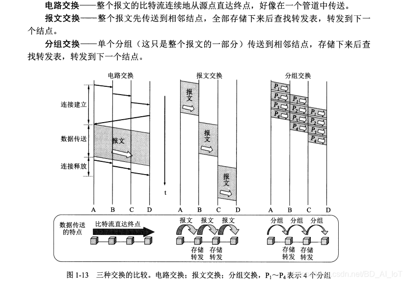 建立连接(占用通信资源)-通信(一直占用通信资源)-释放连接(归还通信资源)。