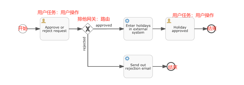 <userTask id="holidayApprovedTask" name="Holiday approved"/>