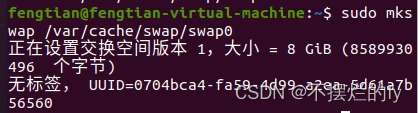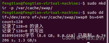 (bs=64M是块大小,count=128是块数量,所以swap空间大小是bs*count=8192MB=8GB。)