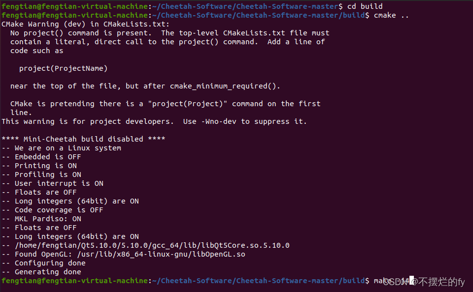 主要分为四大部分:完成Qt、Lcm与Eigen库的安装及Cheetah代码的编译四部分。(具体Cheetah代码与论文的简介可以参考知乎中MIT Cheetah 完整开源代码与论文简介 - 知乎 (zhihu.com)的介绍)。