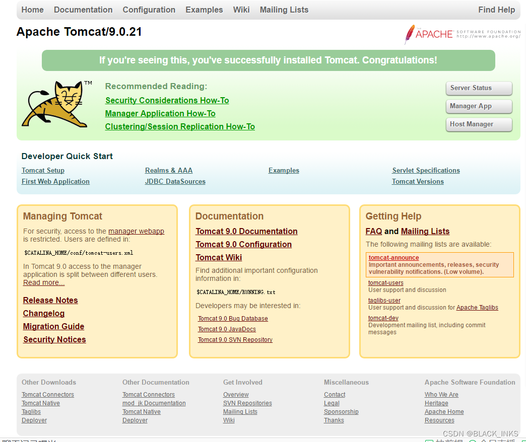 看到以下界面,说明Tomcat 成功安装并启动了。