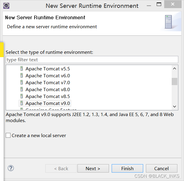 点击eclipse中的window菜单,选择“preferences”--"server"--"Runtime Environment"---"add",出现如下图所示界面: