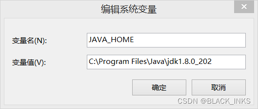 变量值: C:\Program Files\Java\jdk1.8.0_202 (根据你自己安装的地址填写,复制地址即可)