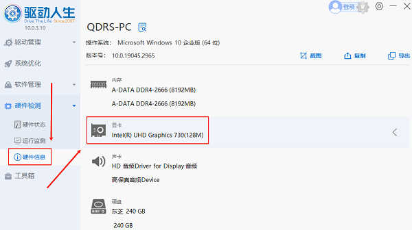 想要快速查看电脑显卡相关的硬件信息,这里可以通过一些专业的驱动管理软件,例如“驱动人生”工具可以提供更为全面的显卡数据,包括显存、GPU型号、厂商等等。