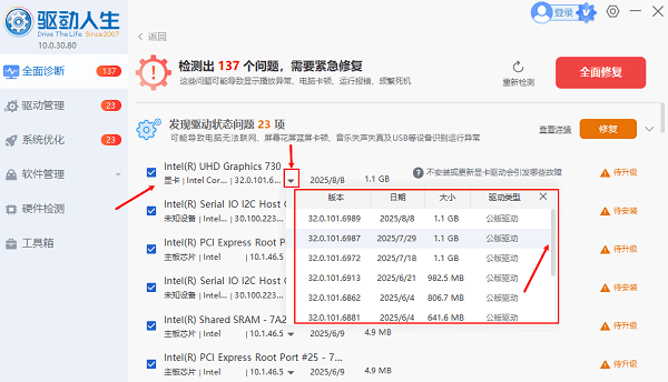 2、软件会自动识别显卡型号,推送相应的驱动更新到列表,用户选择升级驱动便可以;