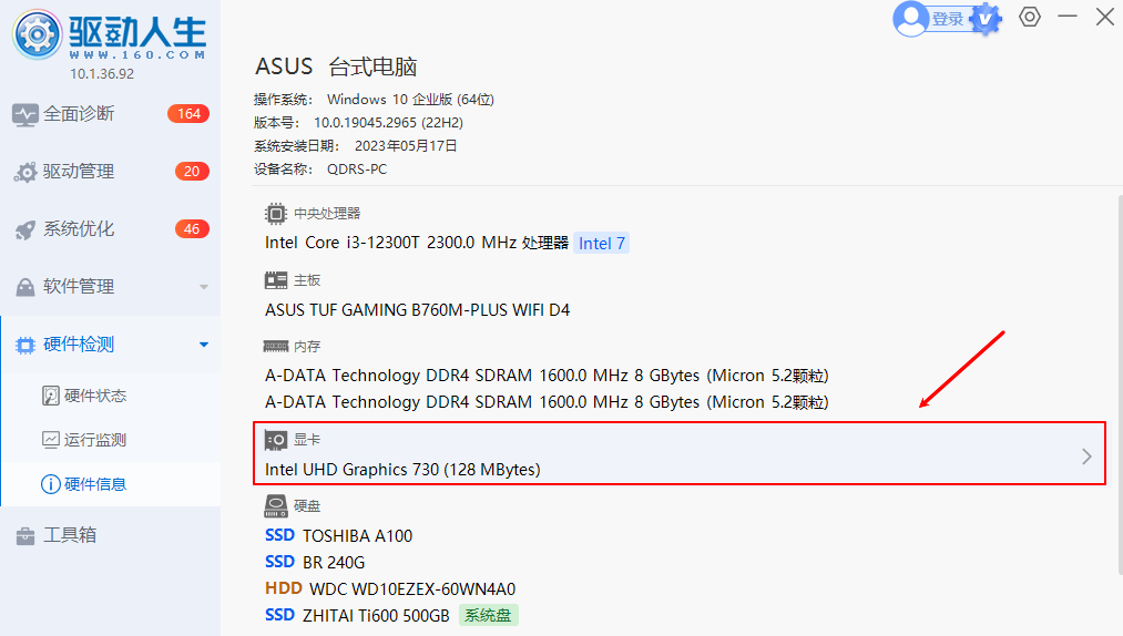 想要快速查看电脑显卡相关的硬件信息,这里可以通过一些专业的驱动管理软件,例如“驱动人生”工具可以提供更为全面的显卡数据,包括显存、GPU型号、厂商等等。
