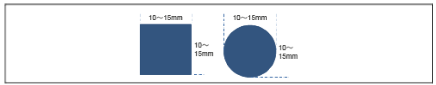 确保相对于将操作产品的人体部位(手指等)而言,尺寸不会过大或过小。如果焊盘是方形的,则将电极的拐角处理成半径为0.5至1.0mm的圆角来减少噪声的影响。