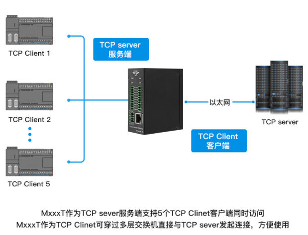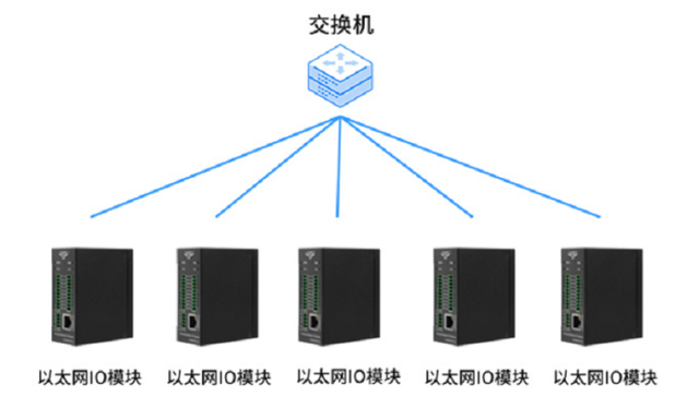 作为Modbus TCP从站时,可多台IO模块接入交换机使用: