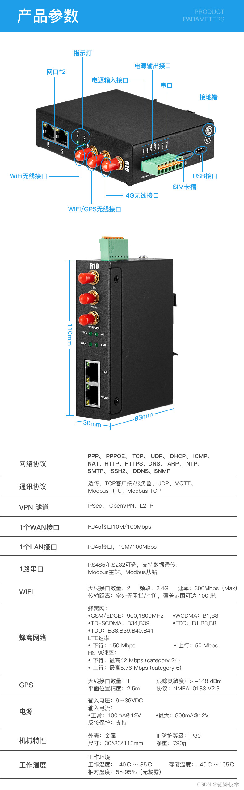 - 一路WAN和一路LAN:R10支持同时连接广域网(WAN)和局域网(LAN),这使得它能够与云平台和本地设备进行高效通信和数据交换。