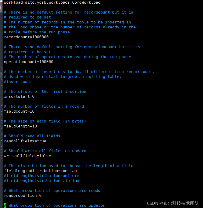 YCSB自带六种测试策略 在workloads中 分别是不同的读写比例