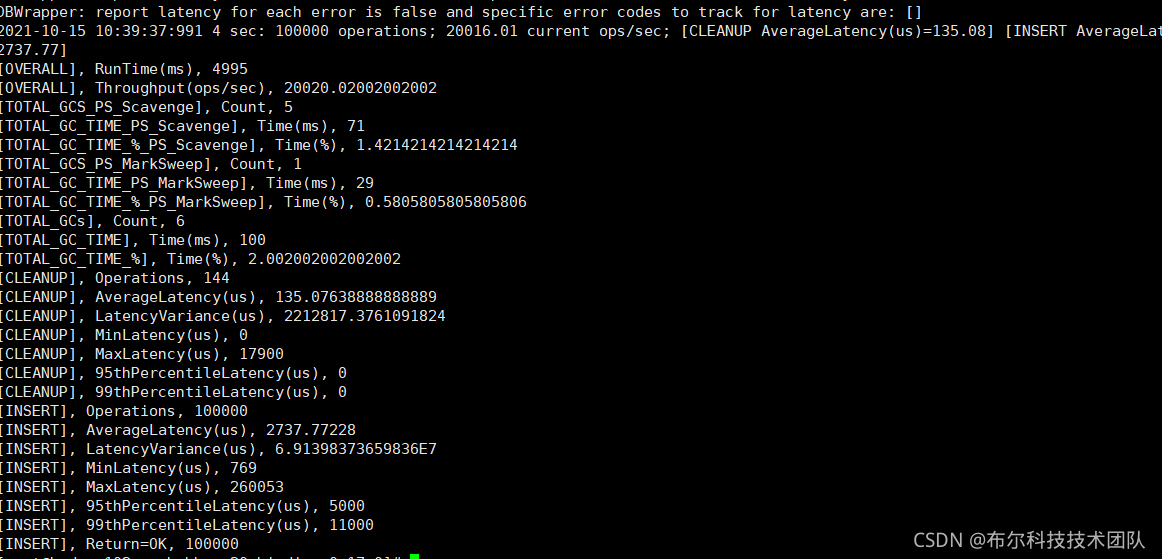 [INSERT], 99thPercentileLatency(us), 4000 99% 的 insert 操作延时在4ms 以内