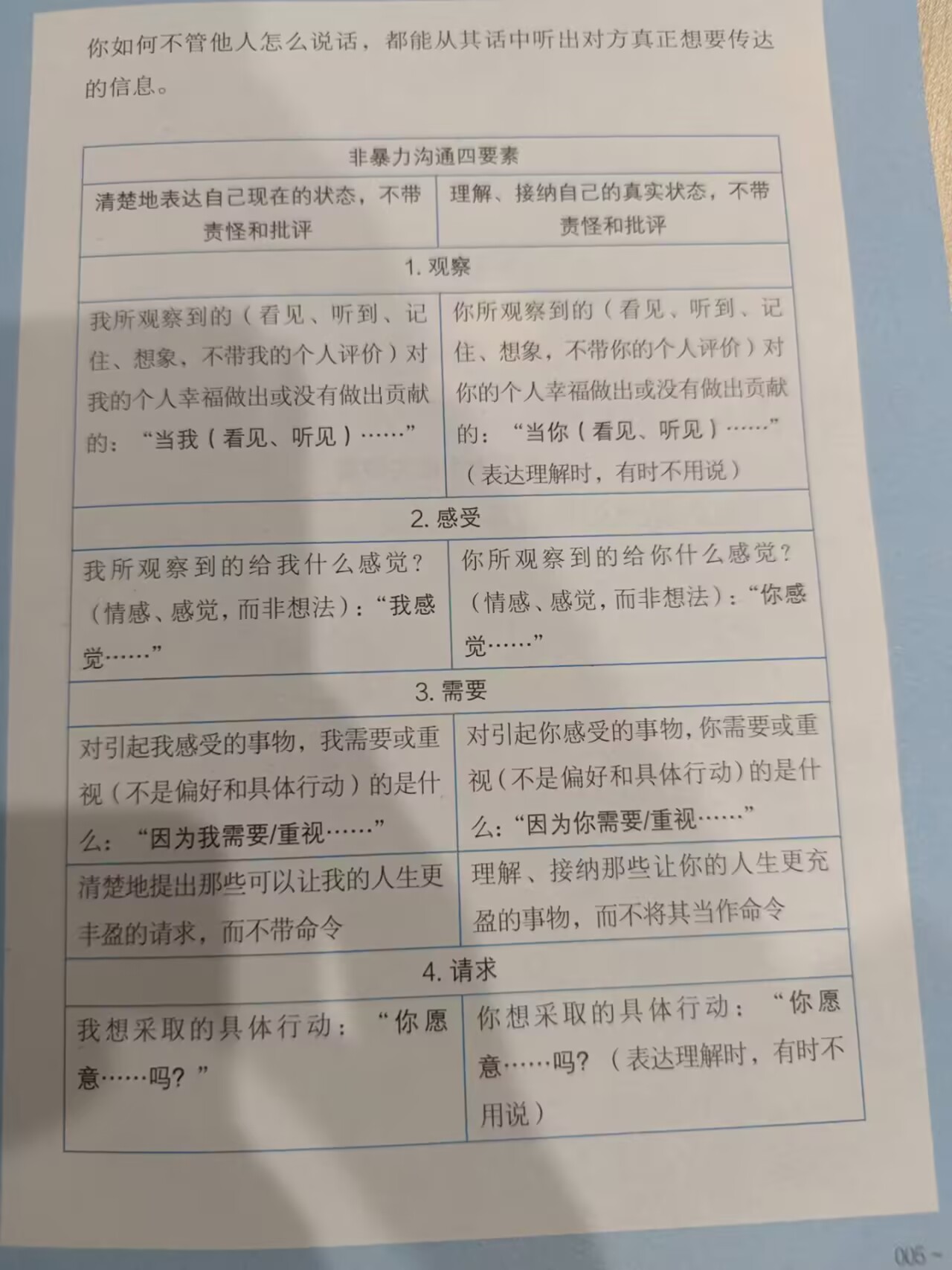 当我(看见、听见)...的时候,我感觉...,因为我需要/重视(我感受到的事物)...,你愿意...吗?