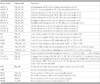 (Cray-1,Cray-2,X-MP,YMP,C90,T90,SV1 和 X1),日本的超级计算机(从NEC SX/2 到 SX/8,Fujitsu VP200 到 VPP5000,以及Hitachi S820 和 S-8300)以及迷你超级计算机(从 Convex C-1 到 C-4)。在 memory-memory 类的向量处理器中,所有的向量运算都是从内存到内存的。第一个向量处理器就是这种类型,CDC 系列的亦是如此。从现在开始让我们把注意力放在 vector-register 类的处理器上我们会。在这个附录的最后(第10小节),我们会简单地讨论一下为什么 memory-memory 类的处理器没有 vector-register 类的处理器那么成功。
