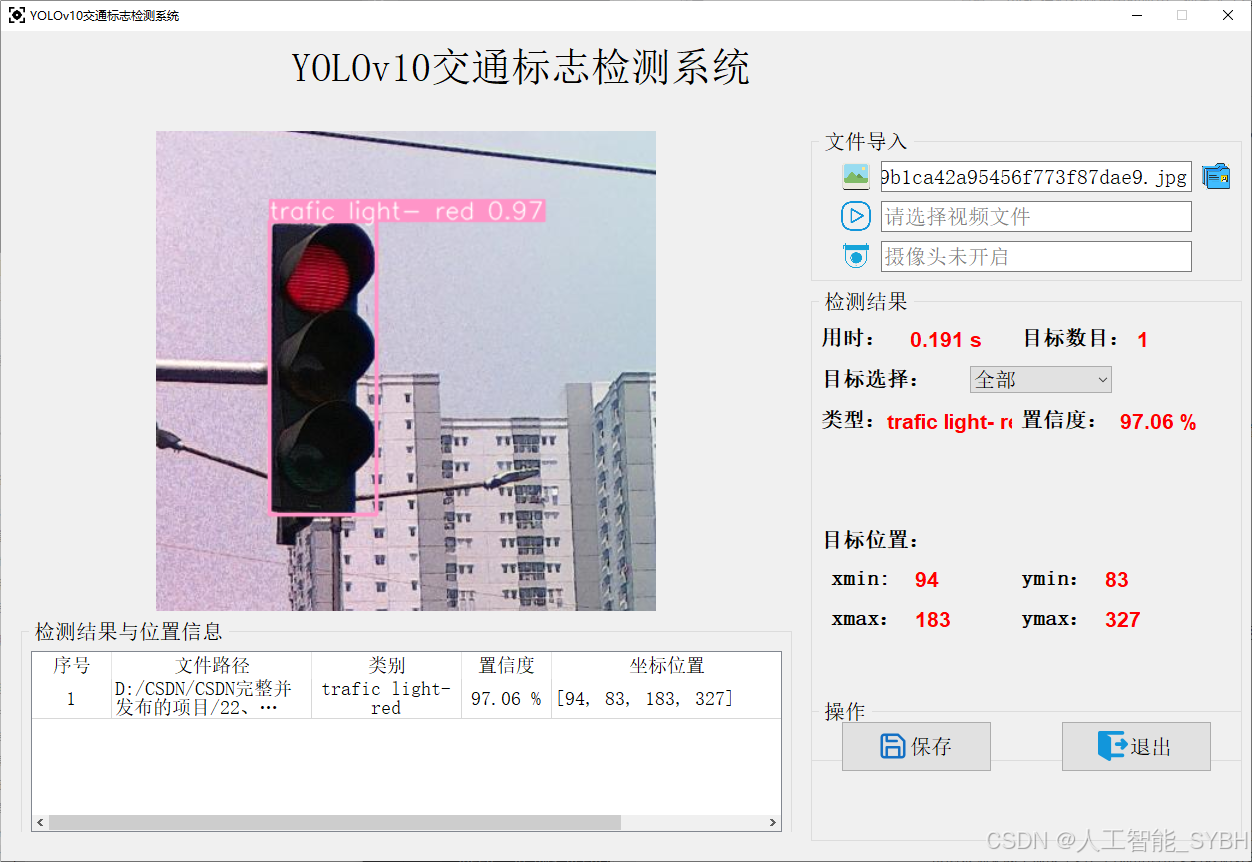 3) 实时检测与UI展示:利用摄像头实时捕捉图像输入系统,经过YOLOv10模型处理后快速识别交通标志区域,同时在用户界面上同步显示检测结果和警报信息。