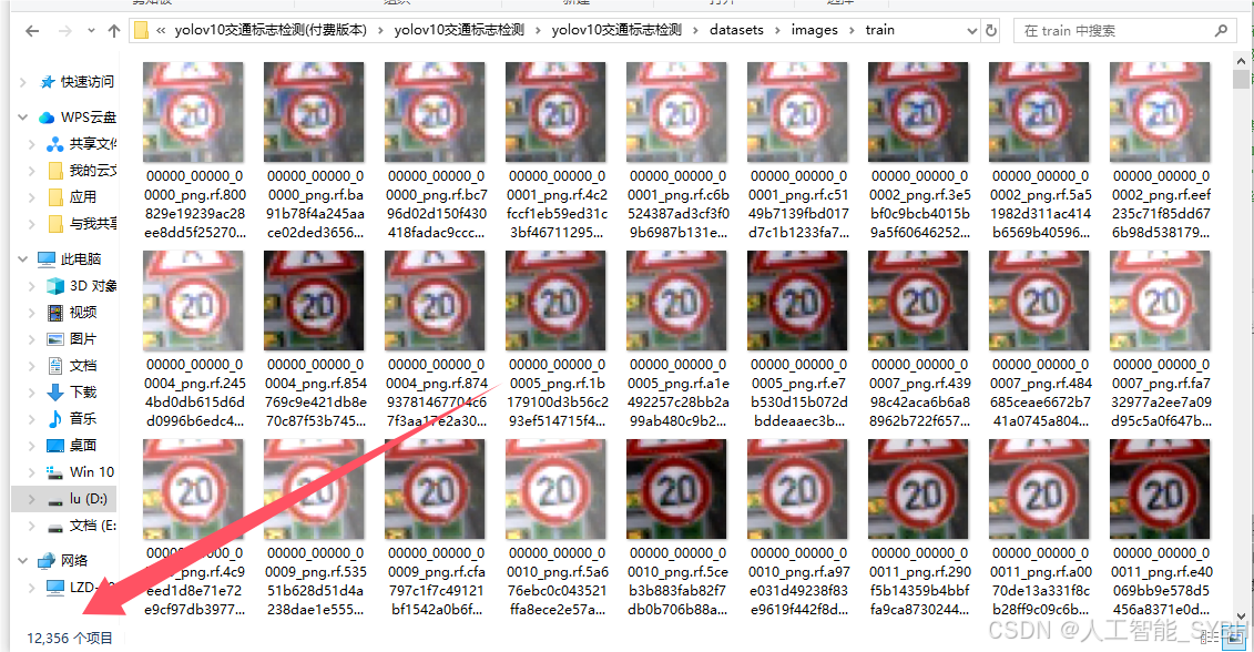 在构建用于交通标志检测的深度学习模型时,一个全面和精确标注的数据集是至关重要的。我们的数据集共包含14276张图像,其中包括12356张训练图像,1266张验证图像,以及654张测试图像。这样的划分旨在确保模型能在充足的数据上进行训练,同时留出足够的样本来验证和测试模型的性能。